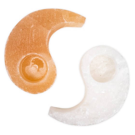 aus Salzkristall, Teelichhalter in zwei Teilen: Yin und Yang. Für 2 Teelichter