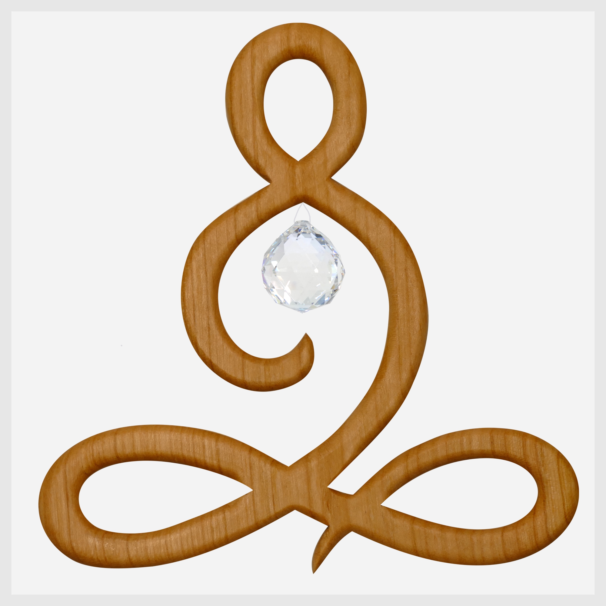 Holz- Kristall Fensterschmuck, mit Glaskristall Kugel 20 mm und Naturholzform, handwerklich gefertigter lebendiger Fensterschmuck aus Birnbaum oder Kirschbaum Holz