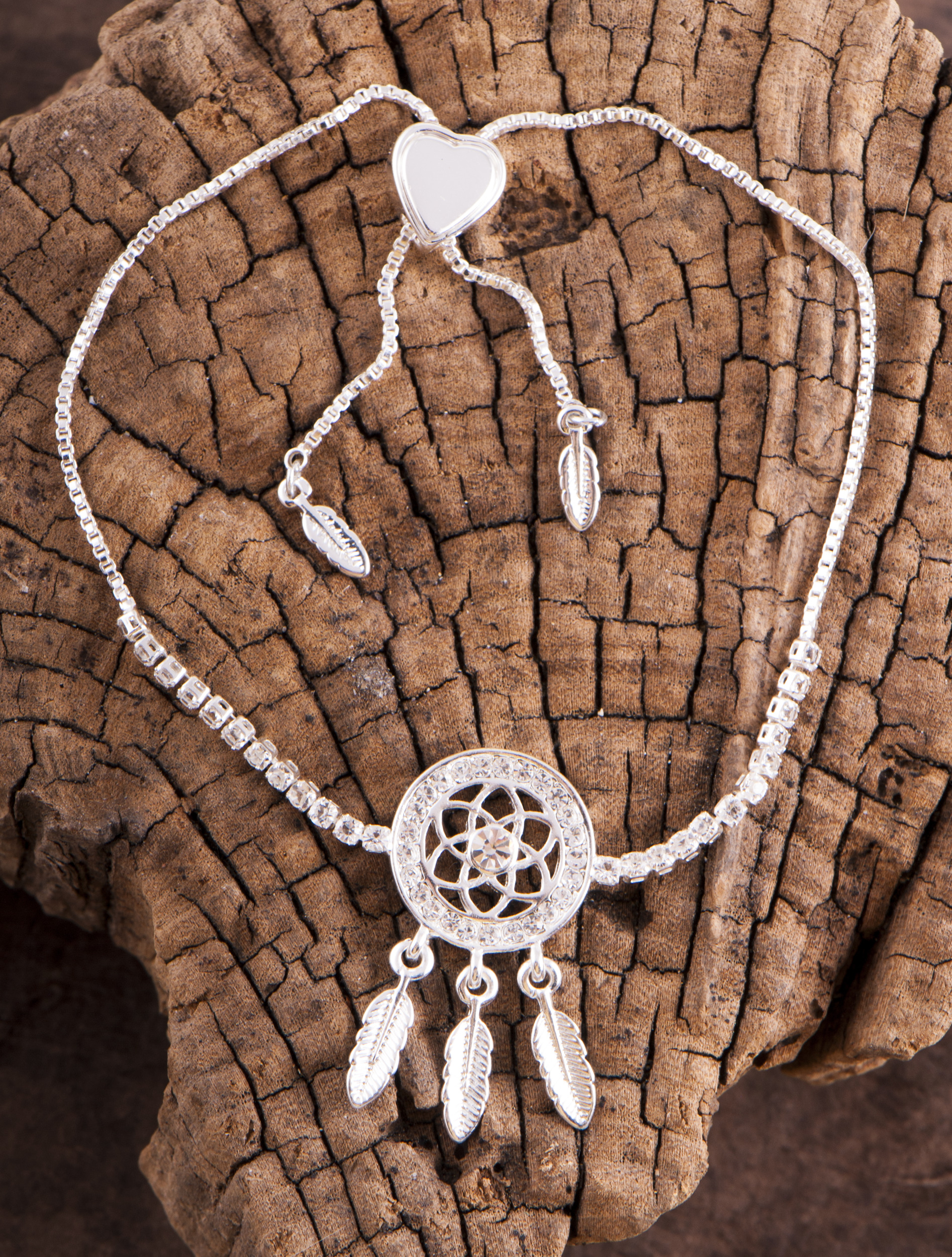 aus Anhänger aus Zinklegierung versilbert, Armband aus Messing versilbert, Länge mit der Kette verstellbar
