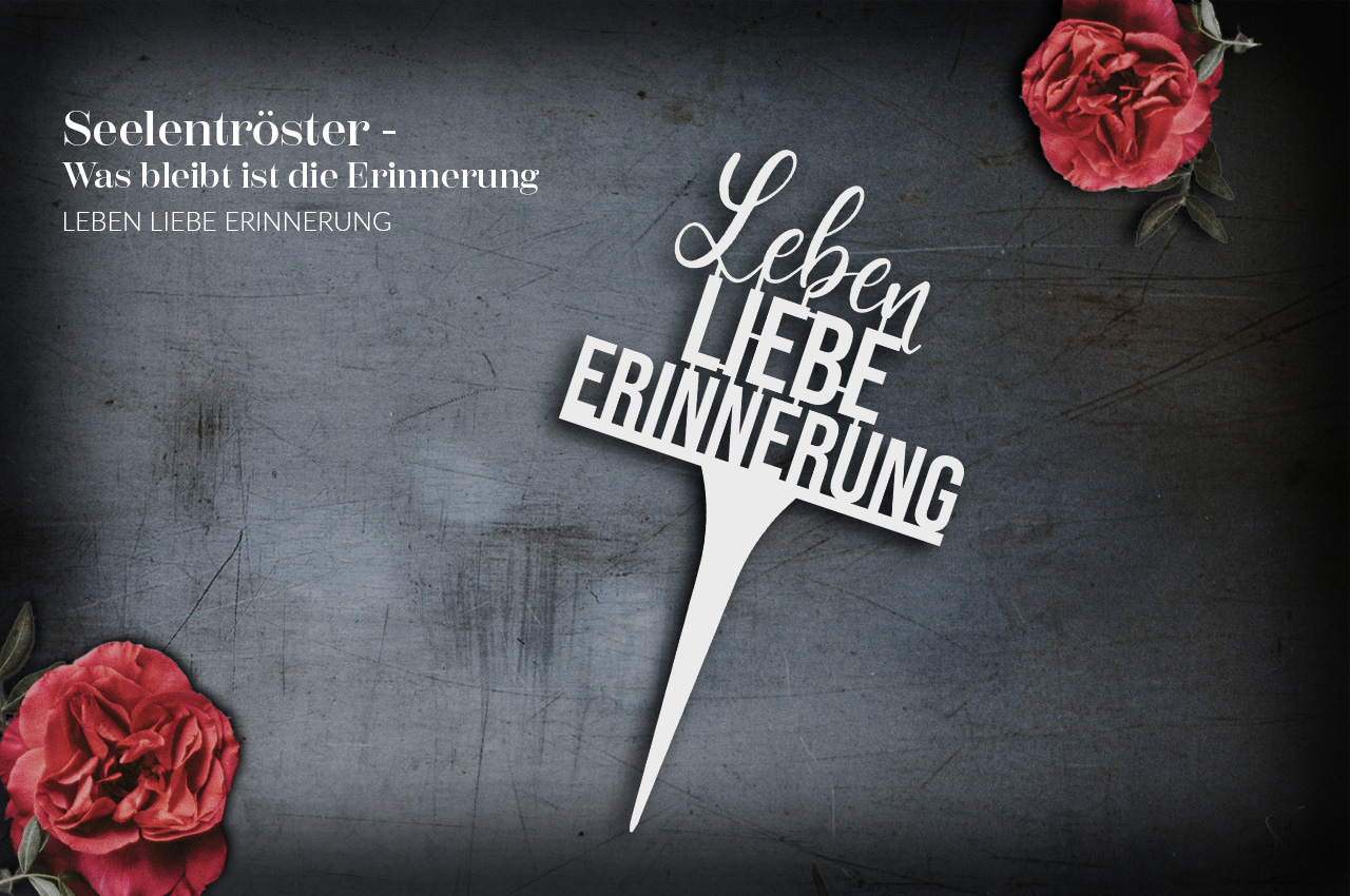 Seelentröster Grabstecker, Text: Leben-Liebe-Erinnerung