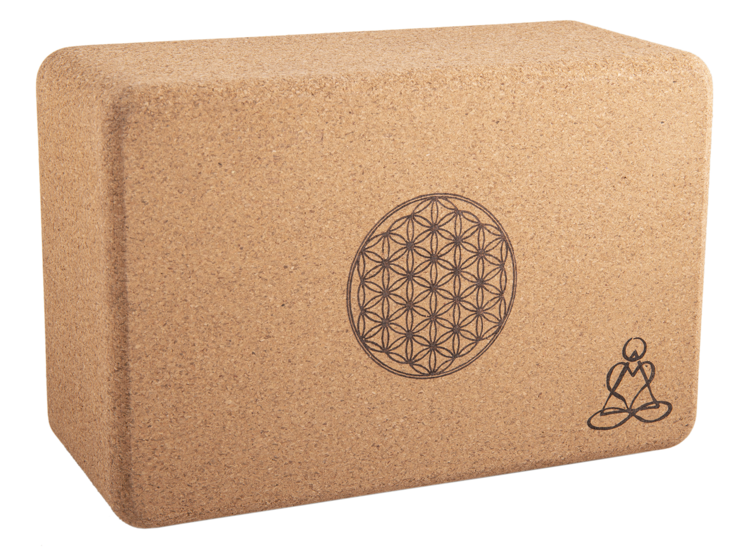Yogablock aus Kork groß mit Blume des Lebens und Mandala