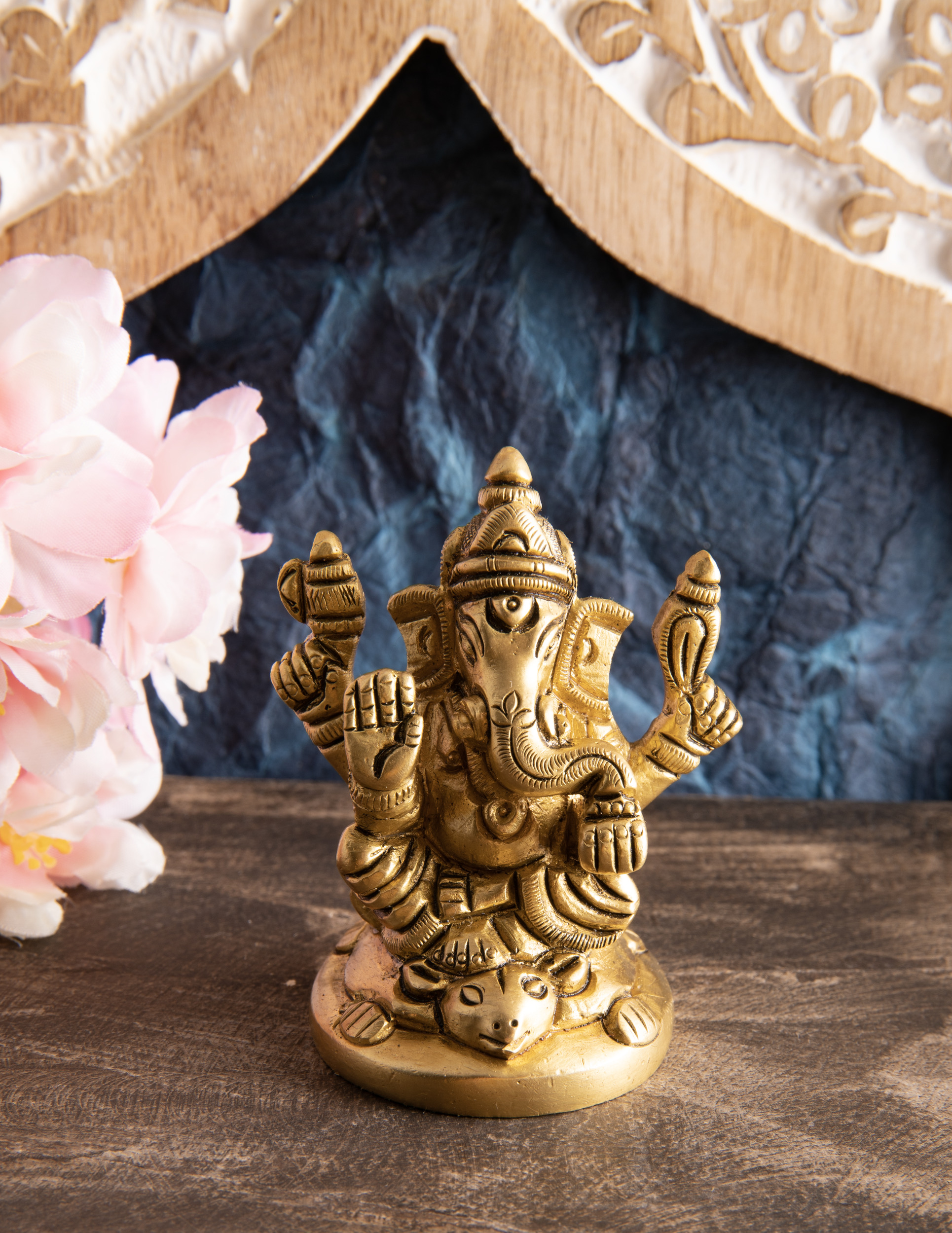 | Ganesha ist vielleicht der Populärste aller indischen Götter. Er gilt als Sohn von Parvati und Shiva. Der Legende nach zog sich Shiva zur Meditation zurück und Parvati schuf sich vor Einsamkeit einen Sohn. Als Shiva zurückkehrte schlug er aus Zorn dessen Kopf ab. Nachdem er erkannte, was er getan hatte, befahl er den Kopf des Ersten, der vorbeikam auf Ganeshas Körper zu setzen, um ihn wiederzubeleben. Dies war ein Elefant – ein neuer Gott war geboren, welcher die Kraft von Shiva und Parvati vereinte. Man sagt, er räume alle Hindernisse aus dem Weg. So wird er oft vor jeglicher Art von Unternehmungen angerufen. Er sorgt für materiellen und geistigen Wohlstand und gilt damit als Schutzpatron für Geschäftsleute. Aber auch bei jedem Neubeginn, sei es ein Umzug oder eine neue Arbeitsstelle, darf Ganesha nicht fehlen, da er die neue Situation segnet und Glück verheißt. Ganesha hat vier Arme. Sie repräsentieren die vier Aspekte des feinstofflichen Körpers: Verstand, Ego, Geist und Bewusstsein. |
