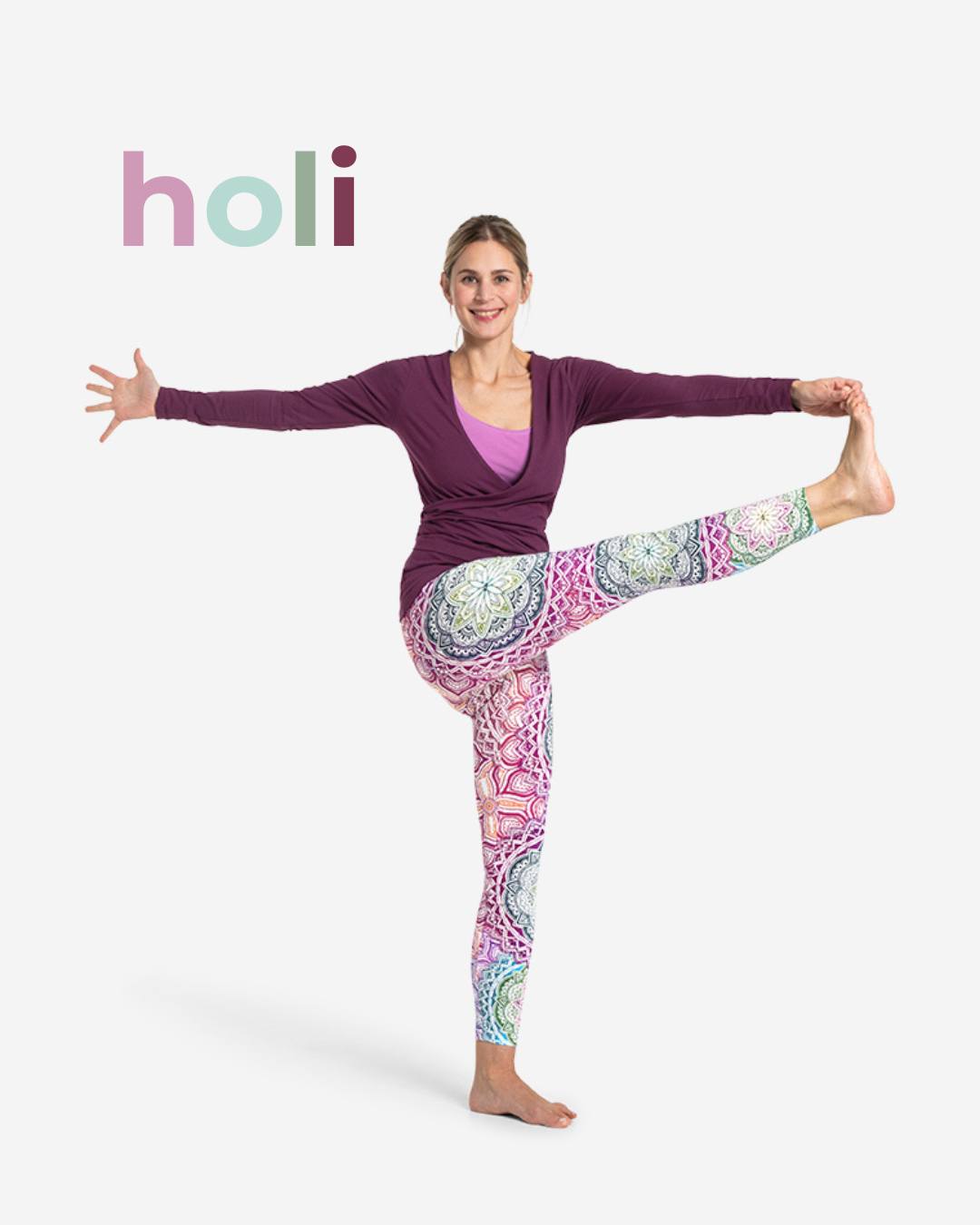 | Die Yoga Leggings Mangala, inspiriert vom Sanskrit-Wort Mangala für Glück verheißend, begleitet dich mit Komfort und Leichtigkeit durch deine Yoga-Praxis und den Alltag. Diese besondere Leggings vereint einen hautnahen Schnitt mit einer neuen, extra bequemen Wadenweite und einem hohen Bund – ideal für Momente, in denen du dich voll und ganz auf dein Wohlbefinden konzentrieren möchtest. Die Leggings besteht aus GOTS-zertifizierter Bio-Baumwolle, die sich weich und natürlich atmungsaktiv auf der Haut anfühlt. In den Stoff ist mikrofeiner Turmalin eingearbeitet, der eine sanft harmonisierende Energie verleiht und dir hilft, dich zentriert und ausgeglichen zu fühlen – perfekt für deine Praxis und innere Balance. Das Design ist ein echter Blickfang: Ein umweltfreundlicher Digitaldruck ohne Wasserverbrauch ziert die Leggings mit ineinanderfließenden, bunten Mandalas, die ein feminines, florales Muster kreieren. Die leuchtenden Farben und zarten Formen unterstreichen die Leichtigkeit und Freude, die Mangala in jeden Moment bringt. Der schmale Beinverlauf wird durch eine neue, komfortable Wadenweite ergänzt, die für ein nicht einengendes Tragegefühl sorgt – besonders wohltuend bei intensiven Bewegungen und Dehnungen. Der hohe Bund schmiegt sich angenehm an und enthält eine diskrete Schlüsseltasche in der Seitennaht, praktisch für kleine Essentials. Ein besonderes Detail ist die inspirierende Affirmation im Innenbund: "Mein Leben ist ein Universum voller Glück und Liebe!" – Worte, die dich daran erinnern, Glück und Freude in jedem Moment zu finden.Die doppelten Nähte und das durchdachte Design mit platziertem Zuschnitt garantieren Langlebigkeit und perfekten Halt, der jede Bewegung mitmacht. Die Yoga Leggings Mangala ist ein Wohlfühlstück, das Komfort, Balance und Stil vereint und dich stets daran erinnert, die Schönheit und Freude des Lebens zu genießen – ob auf der Matte oder im Alltag. |