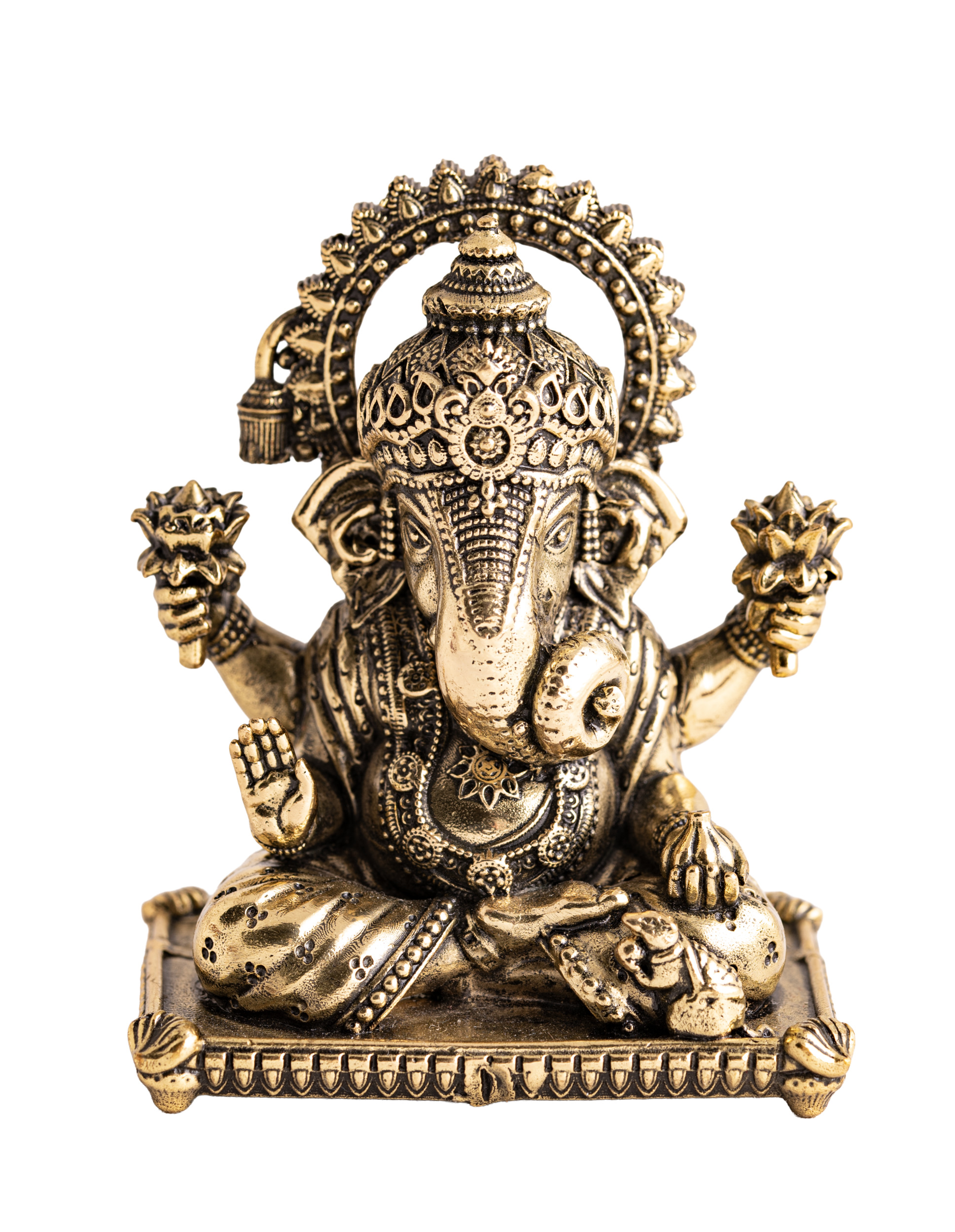 Ganesha ist vielleicht der Populärste aller indischen Götter. Er gilt als Sohn von Parvati und Shiva. Der Legende nach zog sich Shiva zur Meditation zurück und Parvati schuf sich vor Einsamkeit einen Sohn. Als Shiva zurückkehrte schlug er aus Zorn dessen Kopf ab. Nachdem er erkannte, was er getan hatte, befahl er den Kopf des Ersten, der vorbeikam auf Ganeshas Körper zu setzen, um ihn wiederzubeleben. Dies war ein Elefant – ein neuer Gott war geboren, welcher die Kraft von Shiva und Parvati vereinte. Man sagt, er räume alle Hindernisse aus dem Weg. So wird er oft vor jeglicher Art von Unternehmungen angerufen. Er sorgt für materiellen und geistigen Wohlstand und gilt damit als Schutzpatron für Geschäftsleute. Aber auch bei jedem Neubeginn, sei es ein Umzug oder eine neue Arbeitsstelle, darf Ganesha nicht fehlen, da er die neue Situation segnet und Glück verheißt. Ganesha hat vier Arme. Sie repräsentieren die vier Aspekte des feinstofflichen Körpers: Verstand, Ego, Geist und Bewusstsein. |