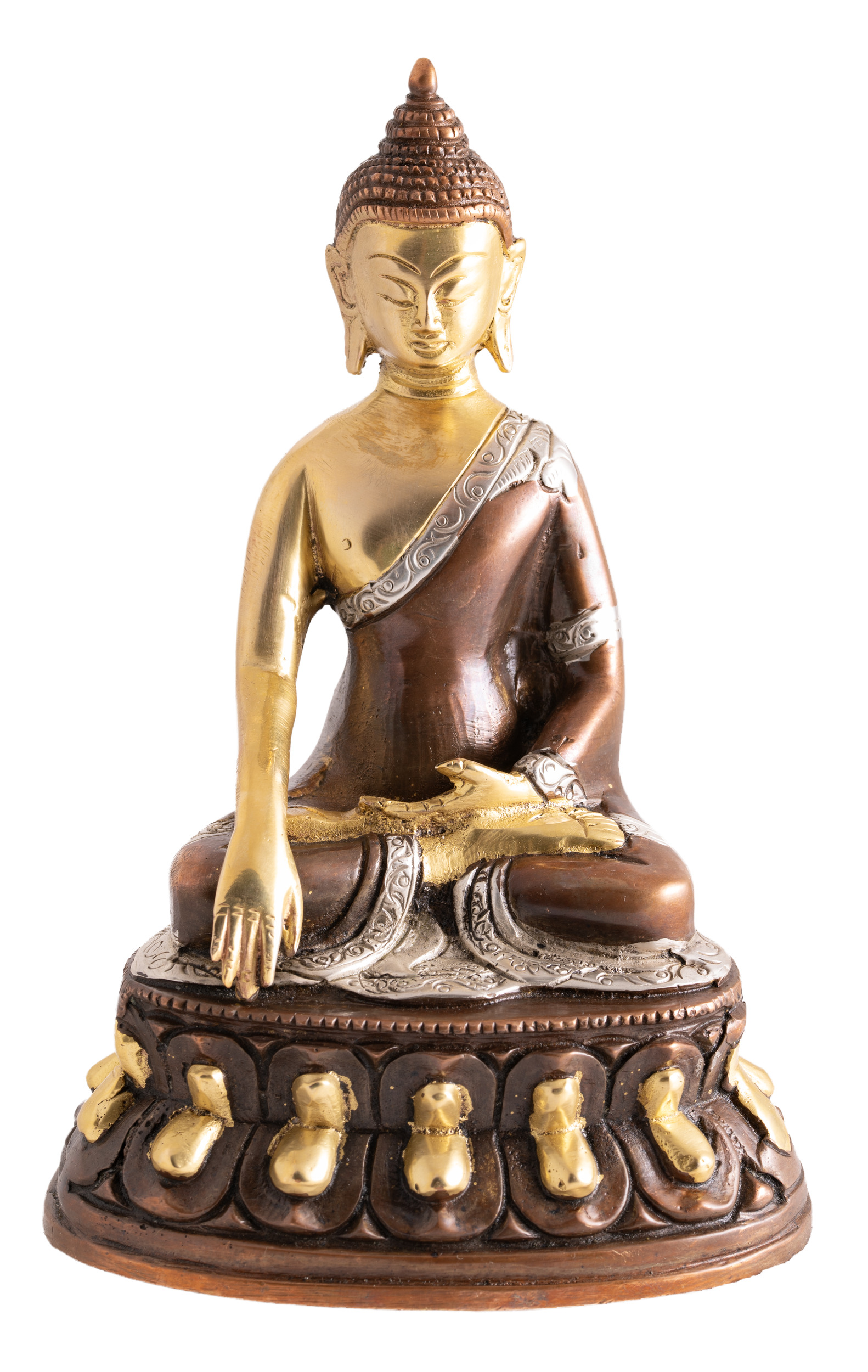 Buddha Shakyamuni Messing mit Gold, Silber, Braun Finish