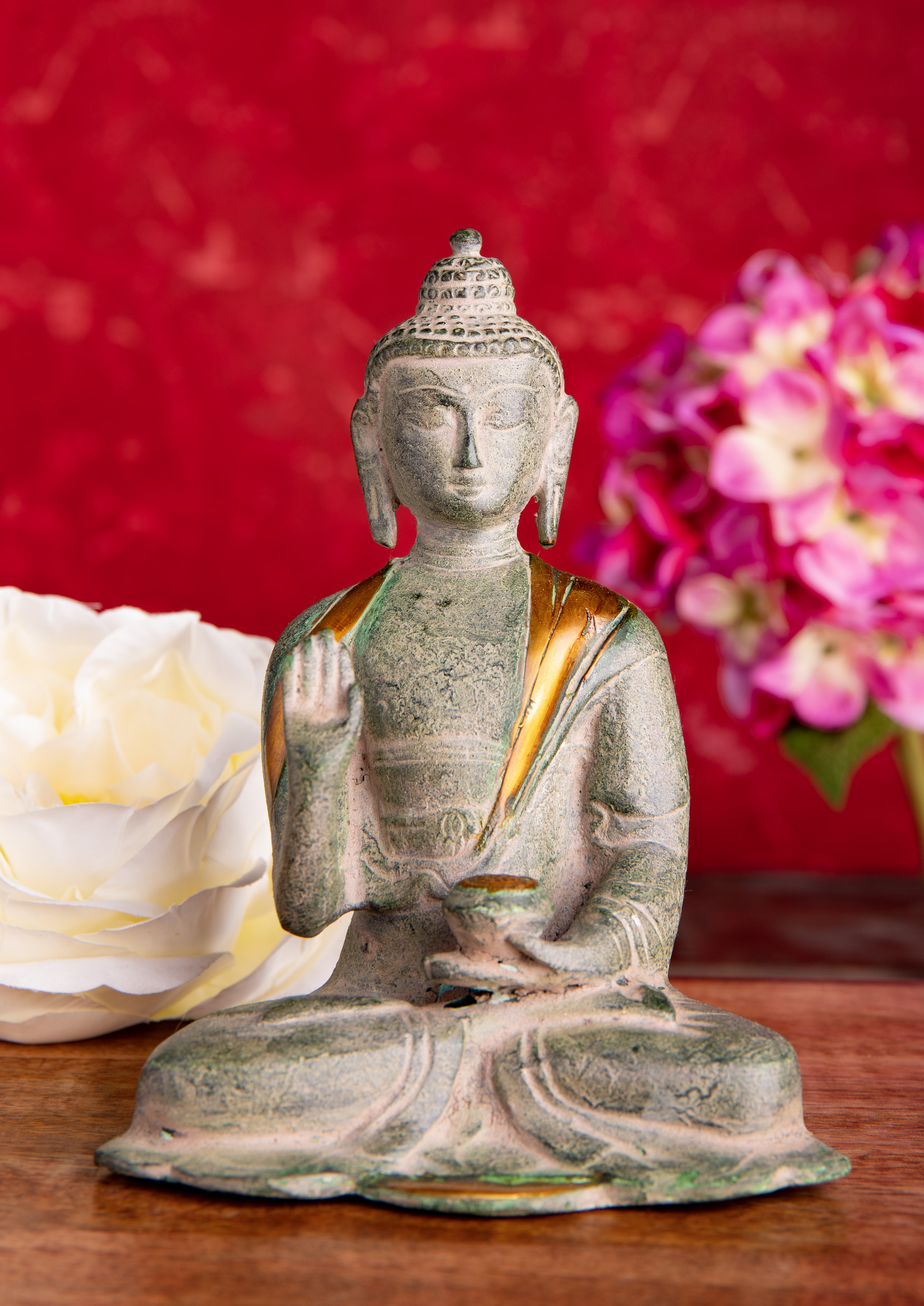 Buddha Kanakamuni antik grün mit Gold Finish 15 cm