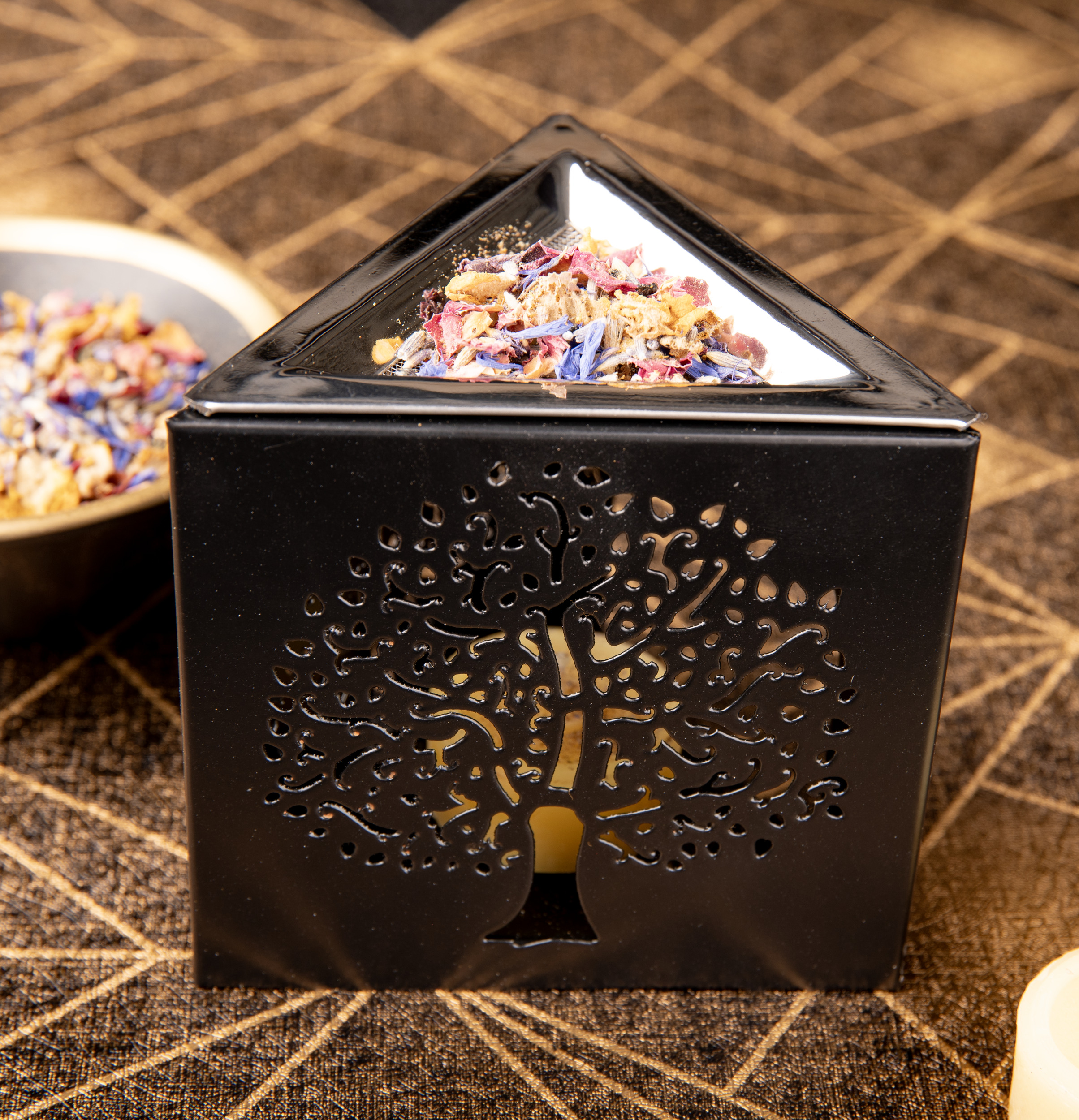 Räuchergefäß Dreieck mit Sieb mit Motiv Lebensbaum