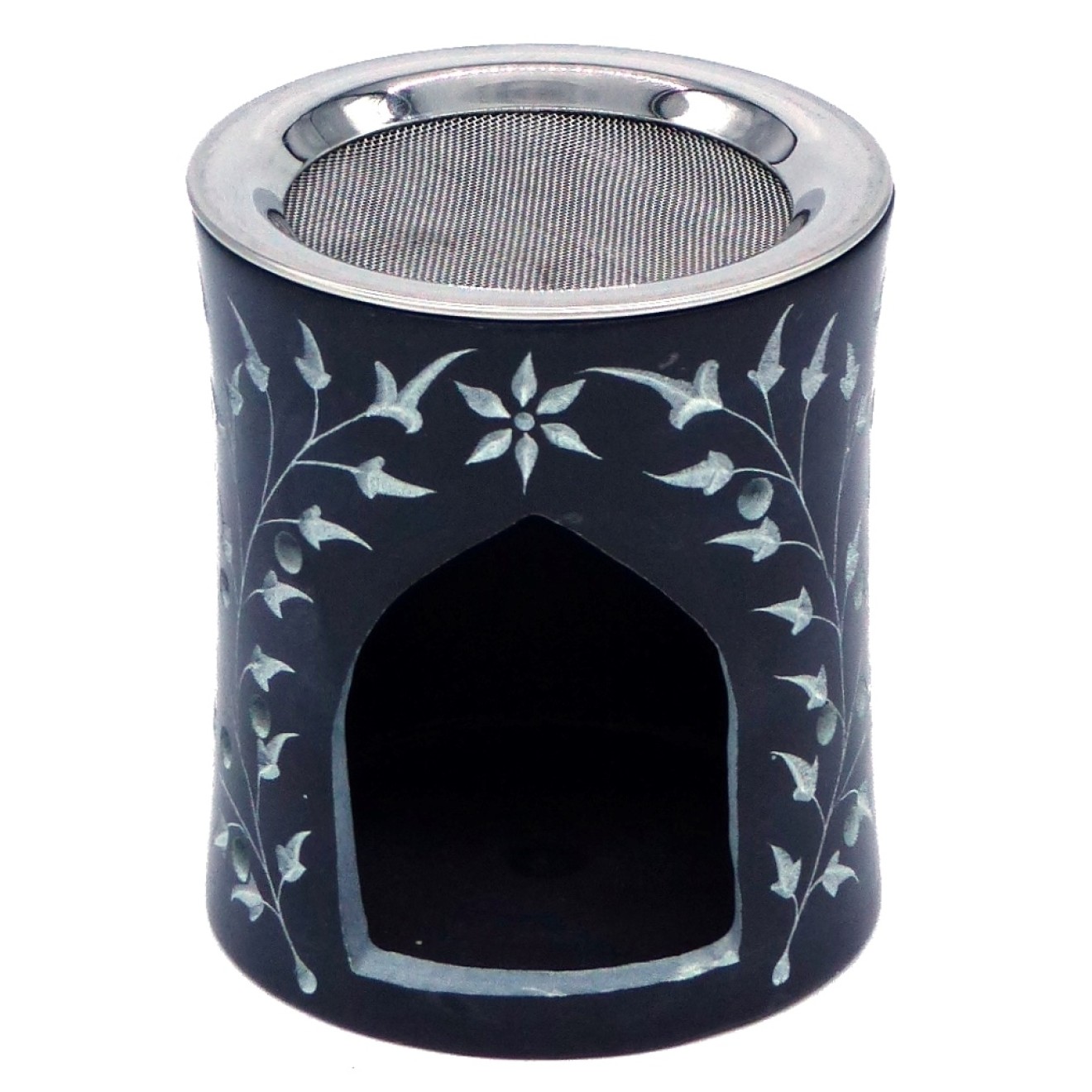 aus schwarzem Speckstein mit Räucher-Sieb D 9cm