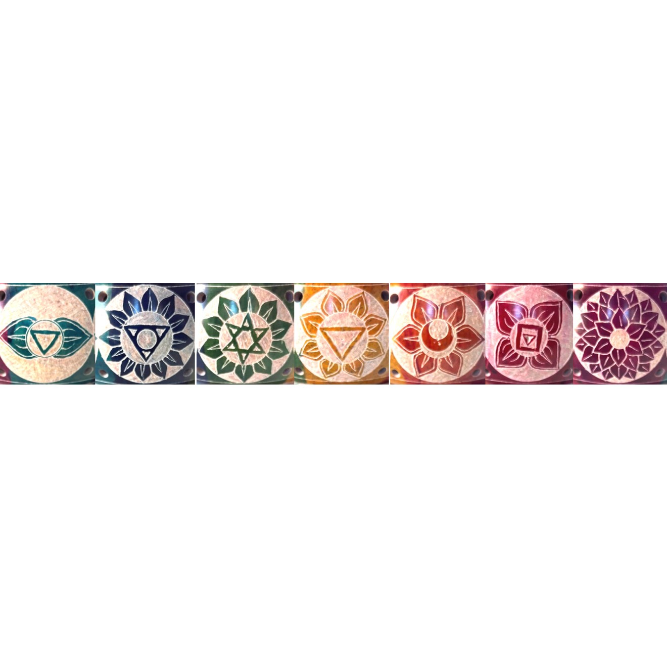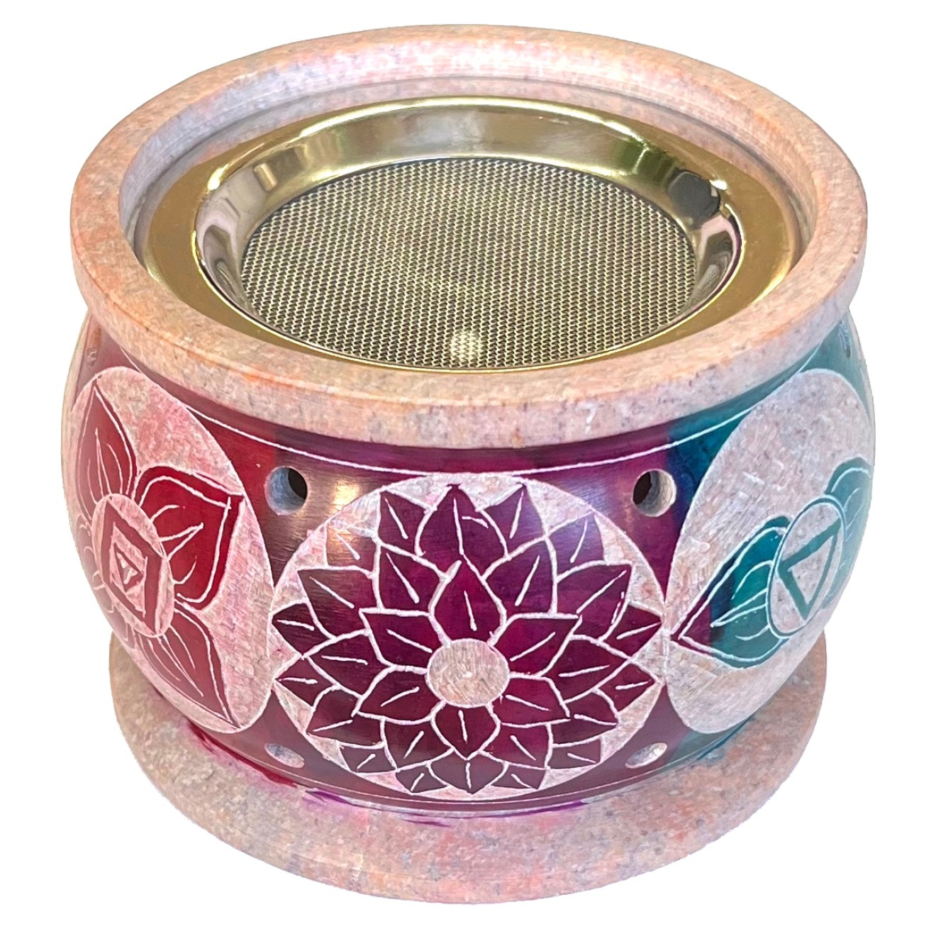 Räuchergefäß Motiv 7 Chakren bunt, aus Speckstein graviert mit Edelstahlsieb