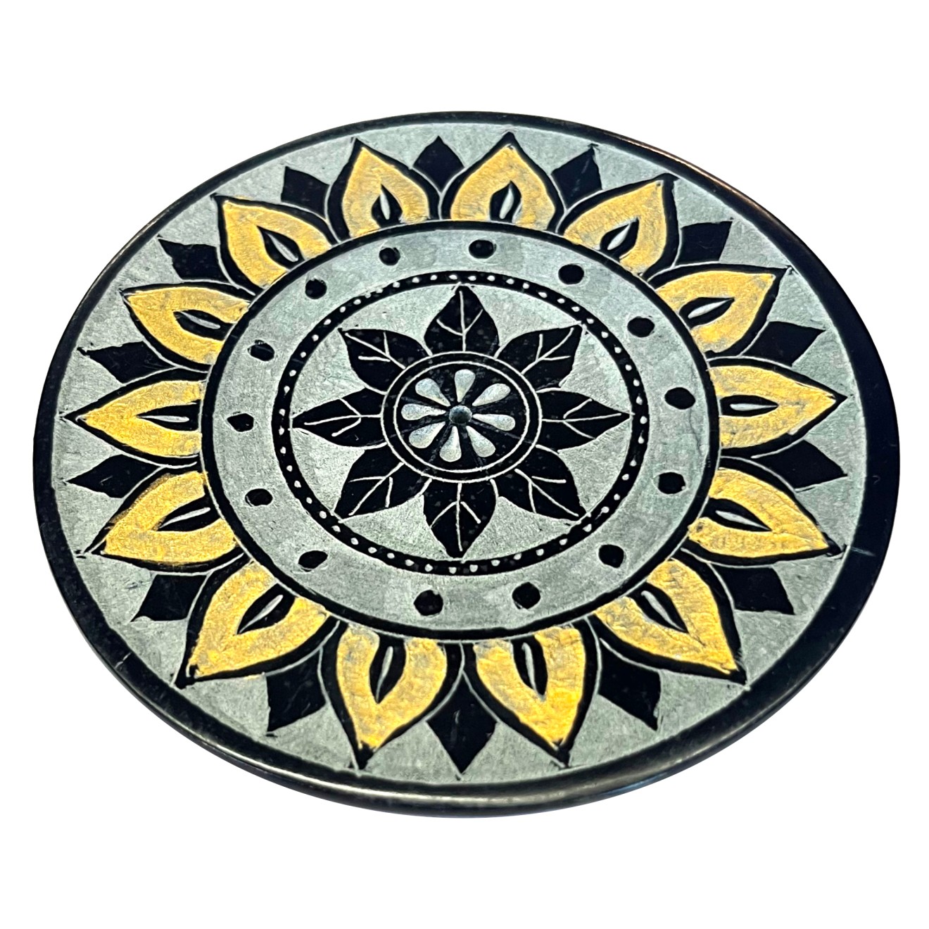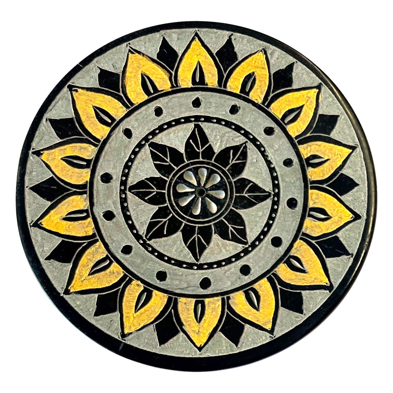 Räucherstäbchenhalter Mandala Blume gold, aus Black Stone Ø10cm