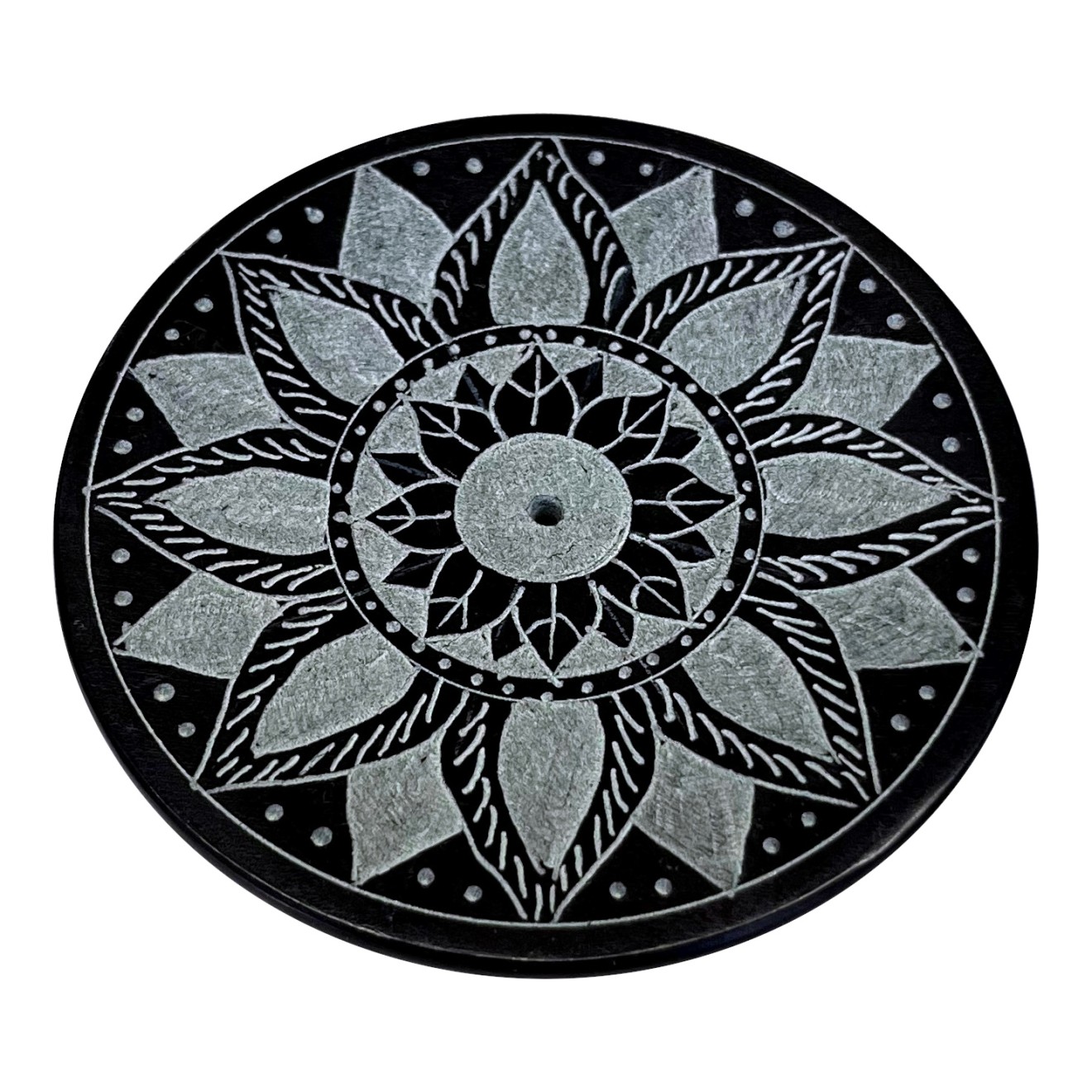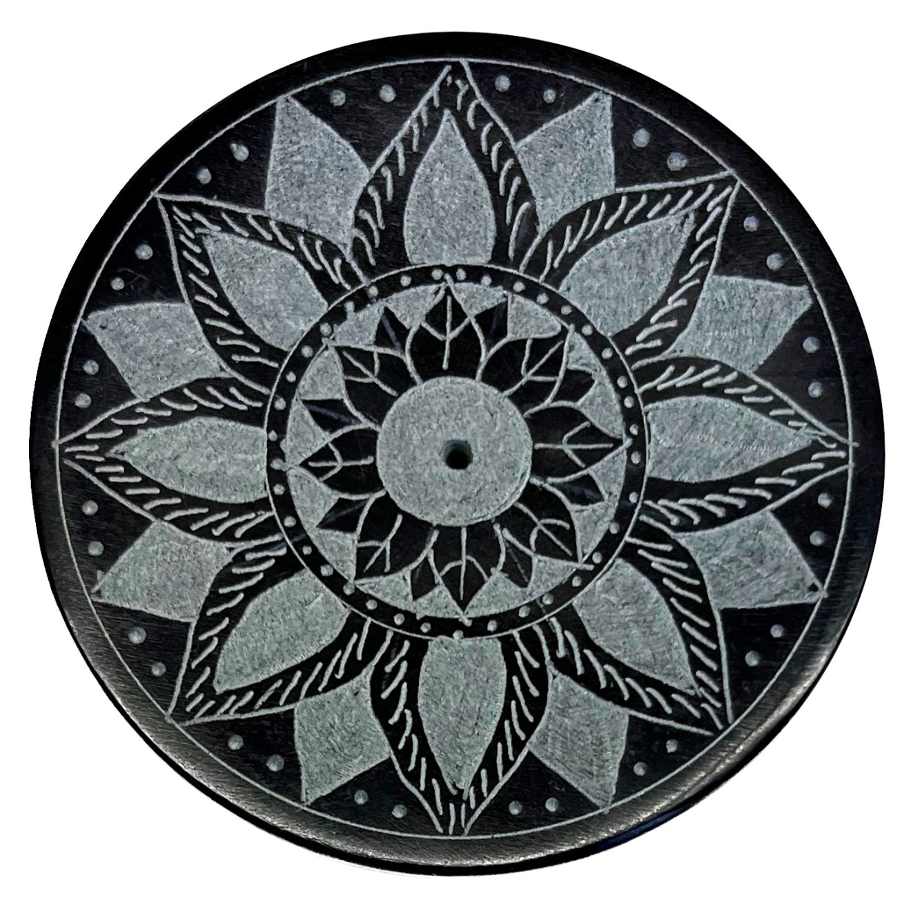 Räucherstäbchenhalter Mandala Blume schwarz, aus Black Stone