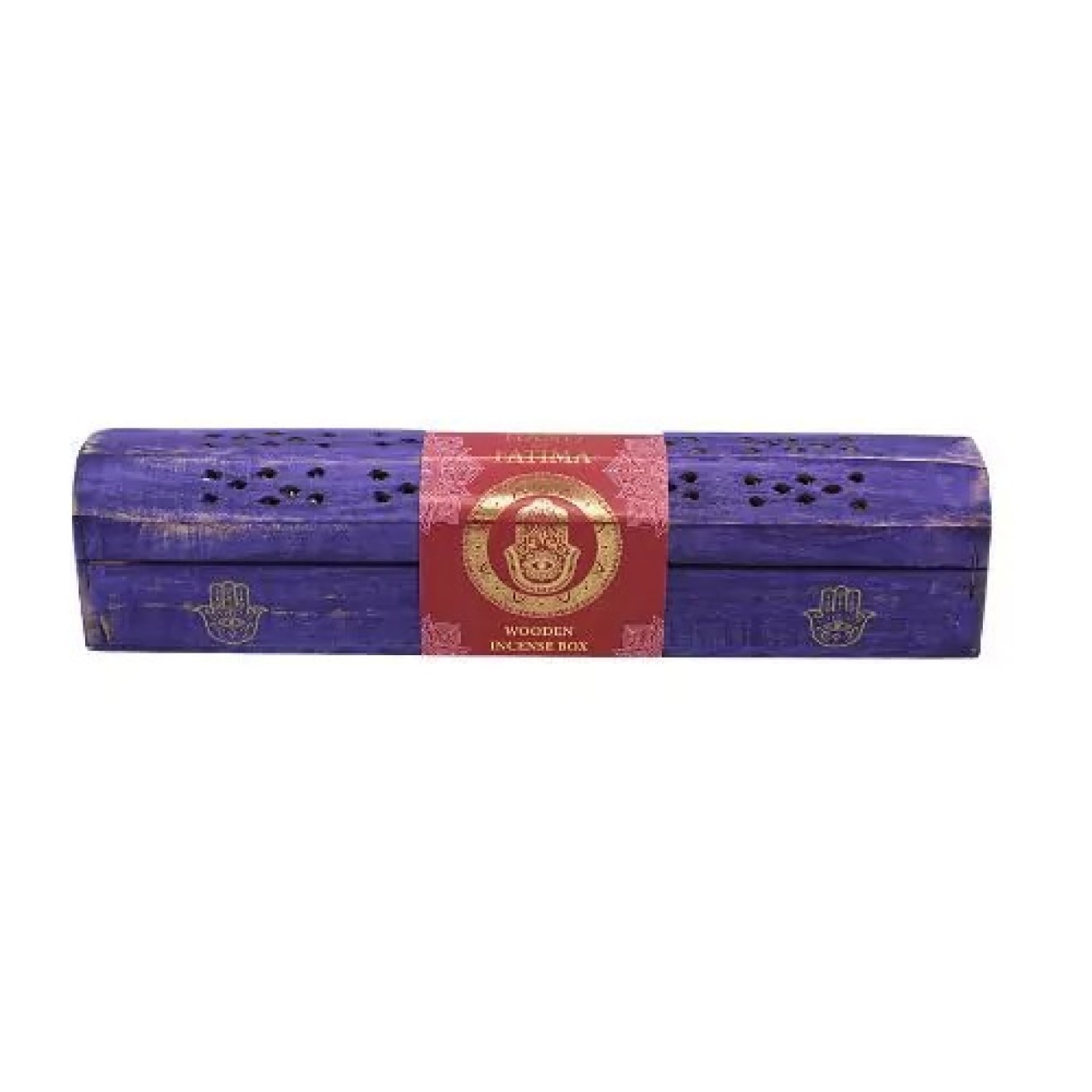 Räucherstäbchenhalter Truhe lila mit Motiv Hand of Fatima
