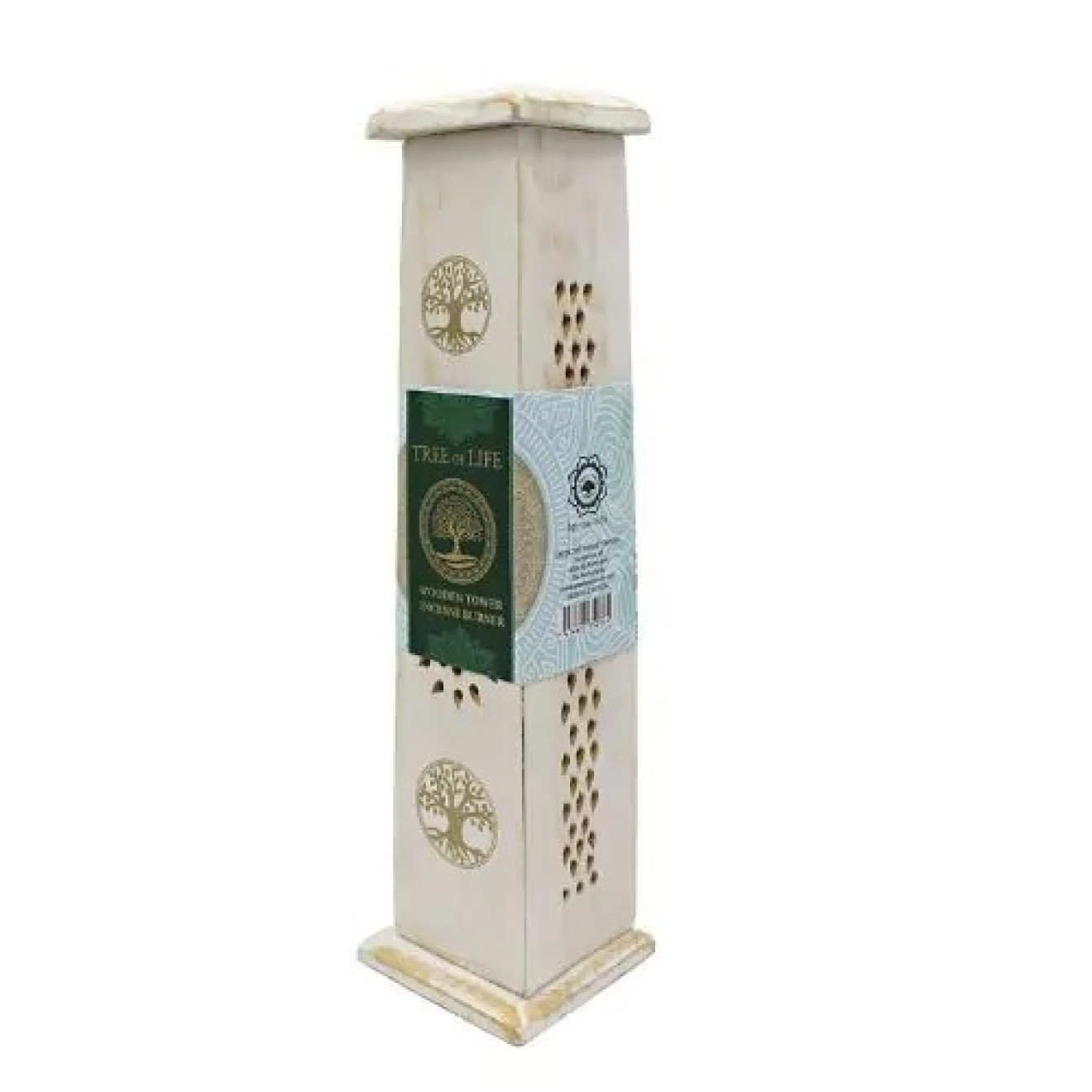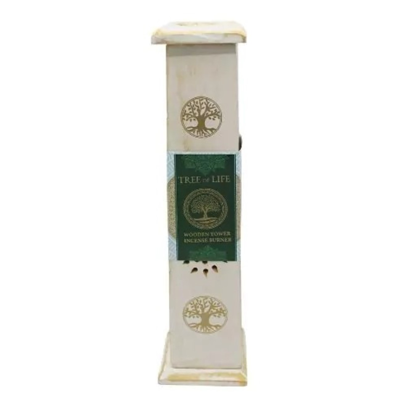 Räucherstäbchenhalter Turm weiß mit Baum des Lebens grün
