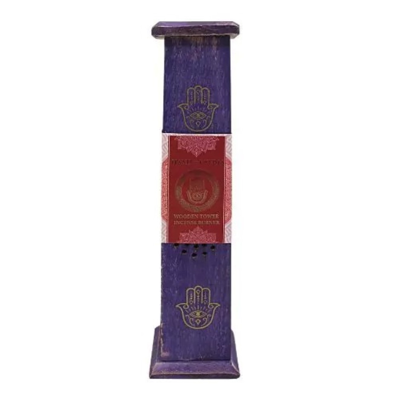 Räucherstäbchenhalter Turm violett mit Hand of Fatima rose