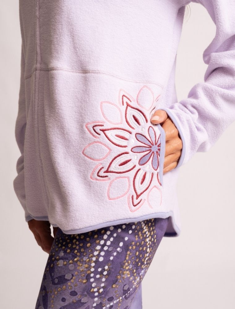 Material: 100 % GOTS-zertifizierte Bio-Baumwolle, komplett GOTS zertifizierter Artikel, lockerer Oversize Schnitt, Eingriffstaschen aus der Seitennaht, feine Stickerei Mandala auf der linken Vorderseite, mit mikrofeinem Rosenquarz im Stoff, weiches Fleece aus hochwertiger Bio-Baumwolle, fair produziert und vegan, Marke Spirit of Om