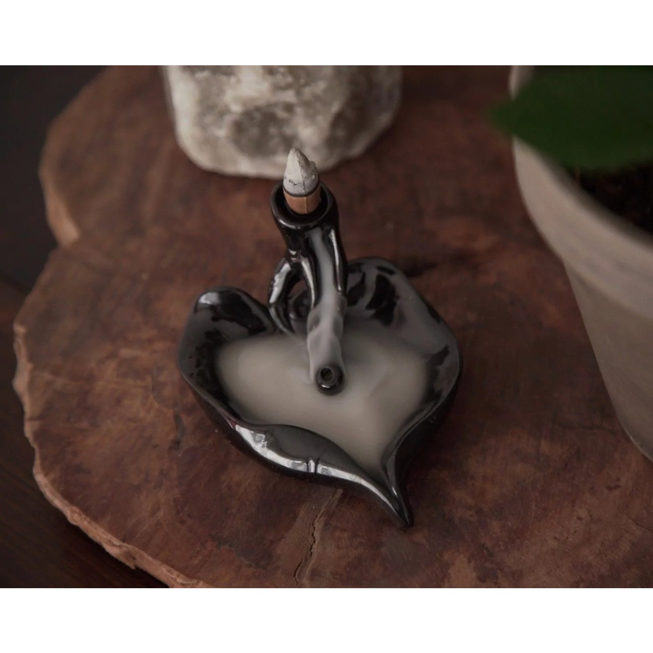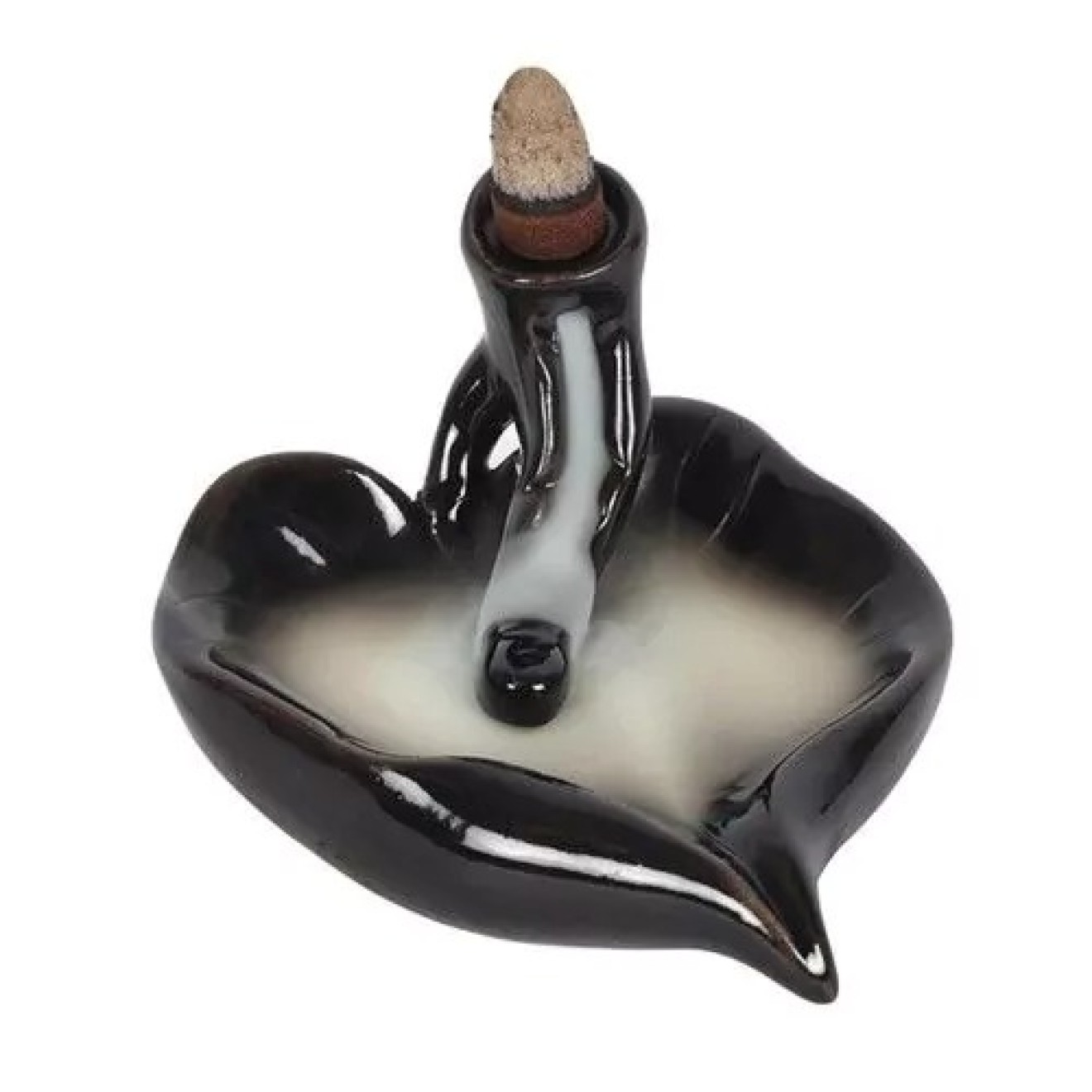 | Die Back Flow Cones Räucherkegel haben ein durchgehendes Loch in der Mitte, bei Verwendung dieses passenden Back Flow Räucherkegel Halter in Brunnenform tritt dann der Rauch nach unten aus und sinkt nach unten ab, so dass der Rauch wie ein Wasserfall aus mystischem Nebel die Stufen des Gefäßes hinuntersinkt und seinen Duft verströmt. |