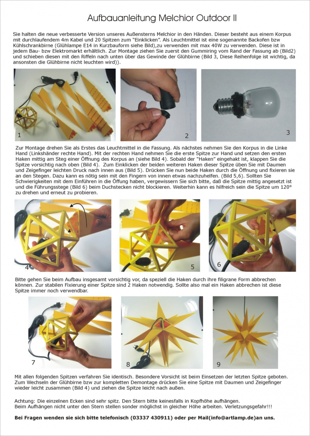 langlebiger wetterfester Außenstern Ø 60 cm aus stabiler Hartplastik mit 20 festen Spitzen in dreieckiger Grundform. inkl. passendes 4m langes Outdoorkabel. Das Leuchtmittel ist nicht enthalten. Die Spitzen werden mit wenigen Handgriffen in einen festen Grundkörper eingeklickt. Die Montagezeit beträgt ca. 5-10 Minuten. Stromstecker Type C - 2 pin (Europlug)