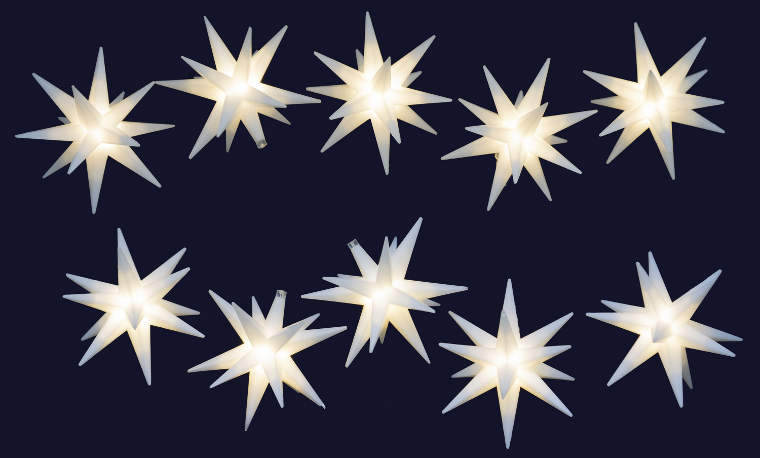 10 Stück 3D Sterne als LED-Lichterkette weiß, Outdoor Außenstern, mit Timer