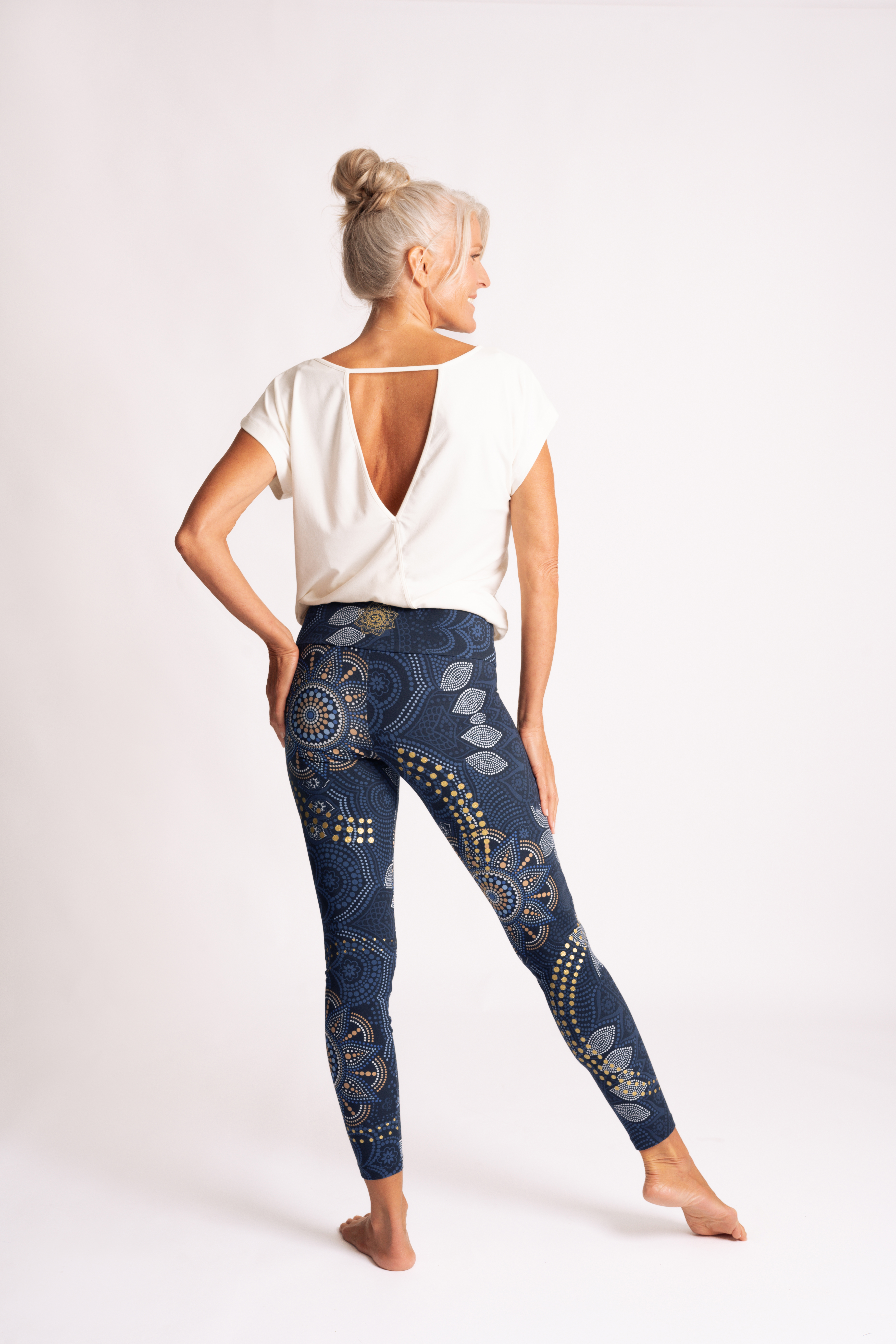 Material: 68% Viskose (aus Bambus-Zellstoff), 28% Baumwolle, 4% Elastan, V-Neck im Rückenteil, feiner Golddruck mit OM-Symbol im Herz auf der Hüfte, weicher, fließender Stoff aus Bambus-Viskose, lockerer comfort fit Schnitt für optimale Bewegungsfreiheit, vegan und fair produziert Hersteller Spirit of OM
