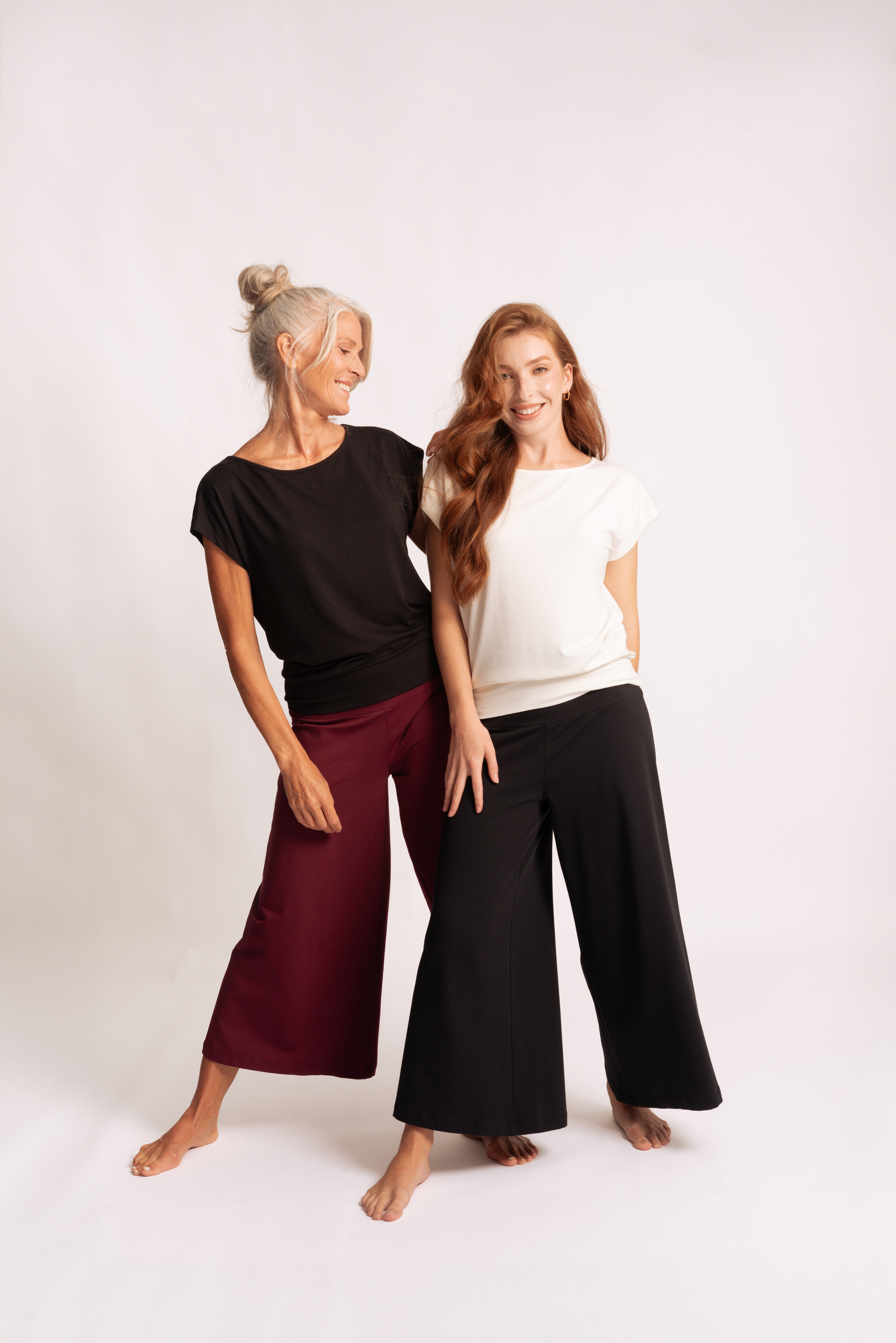 | Bewegte Leichtigkeit für deinen Alltag, Das Bambus-Shirt Jangama vereint fließende Eleganz mit spiritueller Tiefe. Sein lockerer Schnitt schenkt dir Bewegungsfreiheit und ein traumhaft weiches Tragegefühl – ideal für Yoga, Meditation oder entspannte Momente im Alltag. Der Name Jangama (जङ्गम) stammt aus dem Sanskrit und bedeutet beweglich oder lebendig. Es beschreibt alles, was sich aus eigener Kraft bewegt – im Gegensatz zu etwas Starrem oder Unveränderlichen. In spirituellen Traditionen Indiens steht Jangama zudem für einen Menschen, der innerlich frei ist und sich auf den Weg gemacht hat, um Weisheit und Verbundenheit in die Welt zu tragen. Ein raffinierter, offener Rückenausschnitt verleiht dem Shirt eine besondere Note, während ein feiner Golddruck mit OM-Symbol im Herz auf der Hüfte deine innere Ausrichtung unterstreichen. Gefertigt aus hochwertiger Bambus-Viskose, ist das Shirt besonders hautfreundlich, atmungsaktiv und angenehm zu tragen. Es begleitet dich mit Leichtigkeit durch deinen Tag und unterstützt dich dabei, im Fluss zu bleiben – ganz im Sinne von Jangama. |