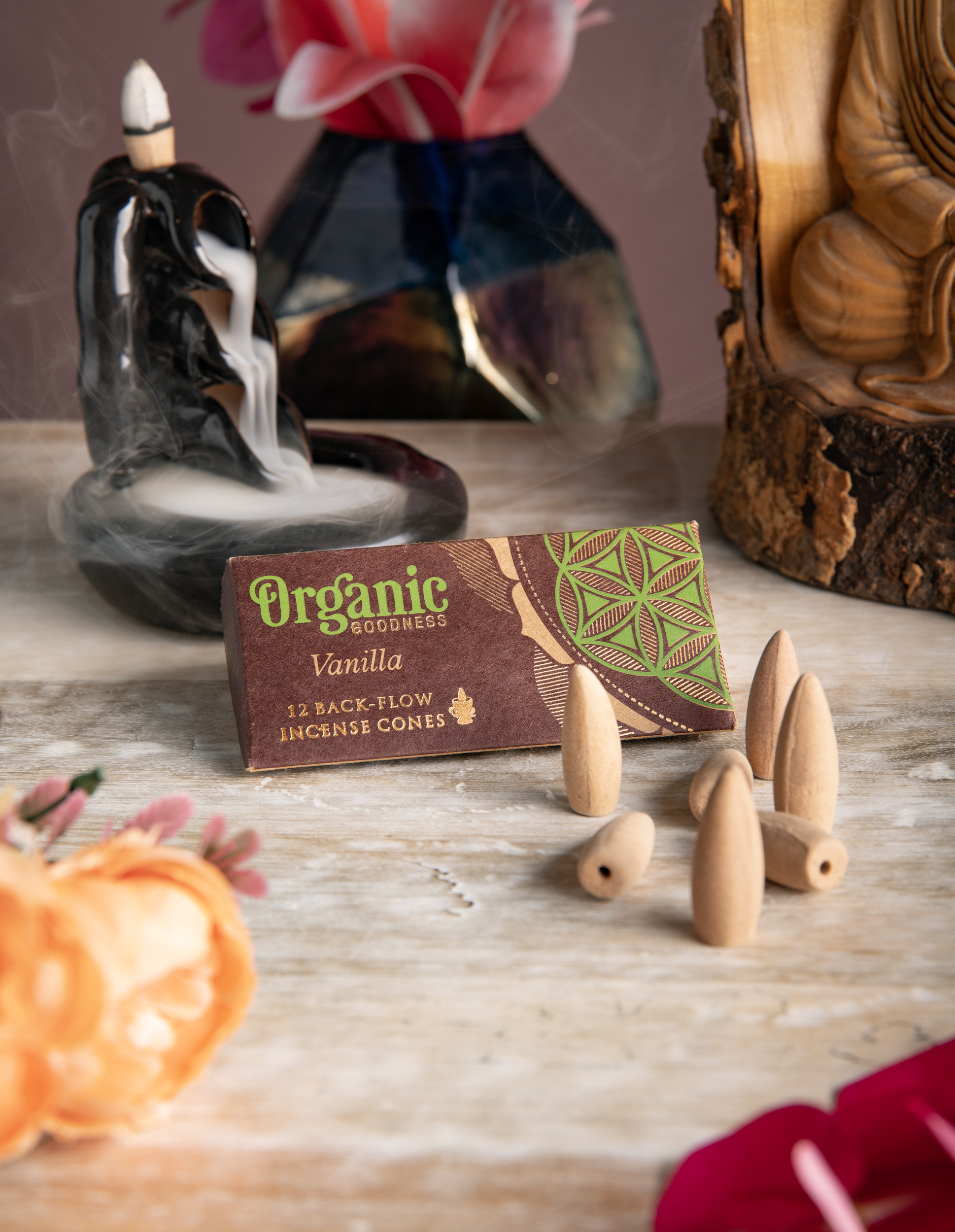 | Back Flow Cones Räucherkegel haben ein durchgehendes Loch im Inneren in der Mitte, NUR bei Verwendung eines Back Flow Räucherkegel Halters in Brunnenform tritt der Rauch dann nach unten aus und sinkt wie Nebel ab.