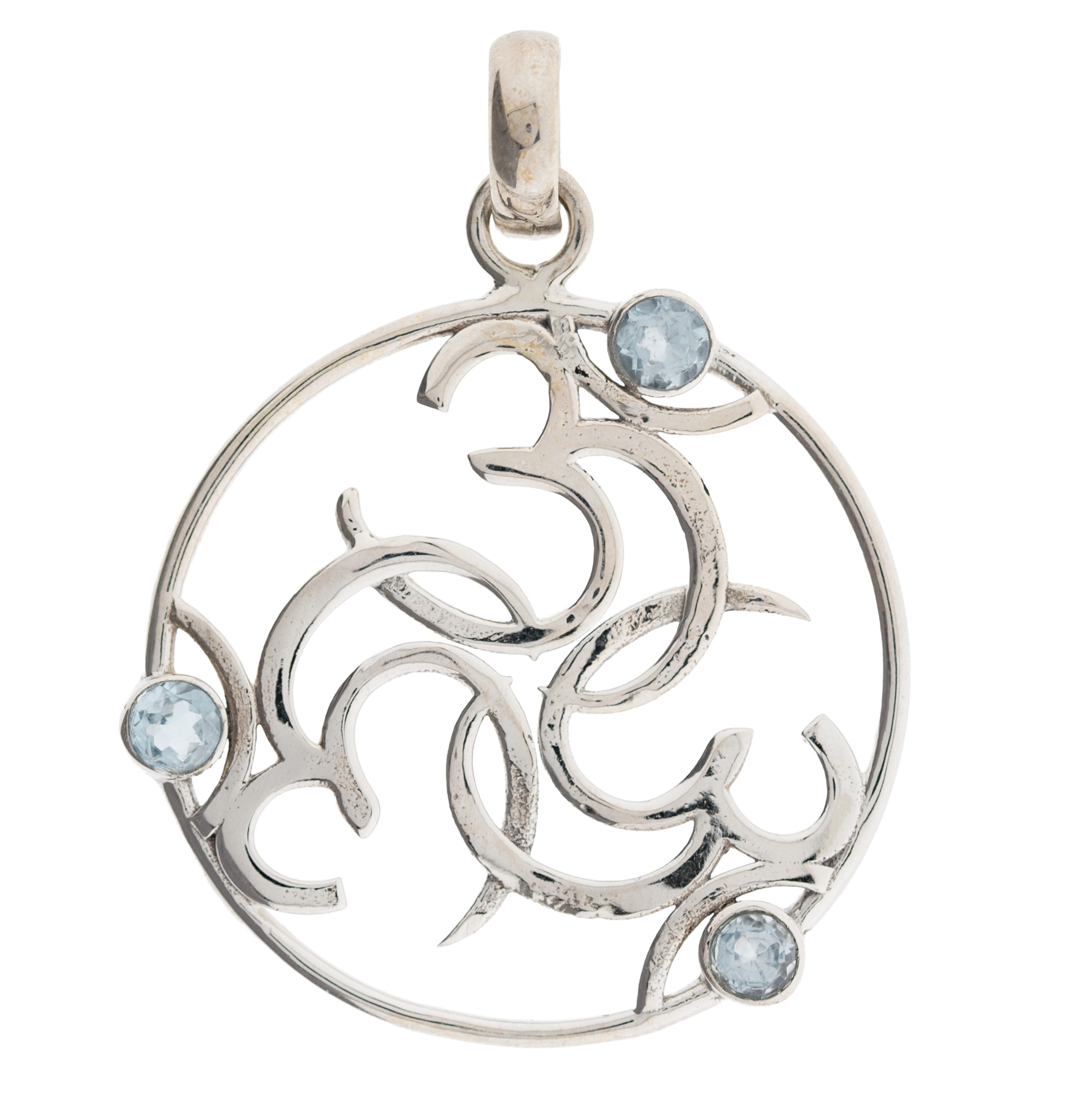 Dreifaches OM: drei heilige Klänge verwoben, aus 925er Silber mit echtem Topaz Edelstein