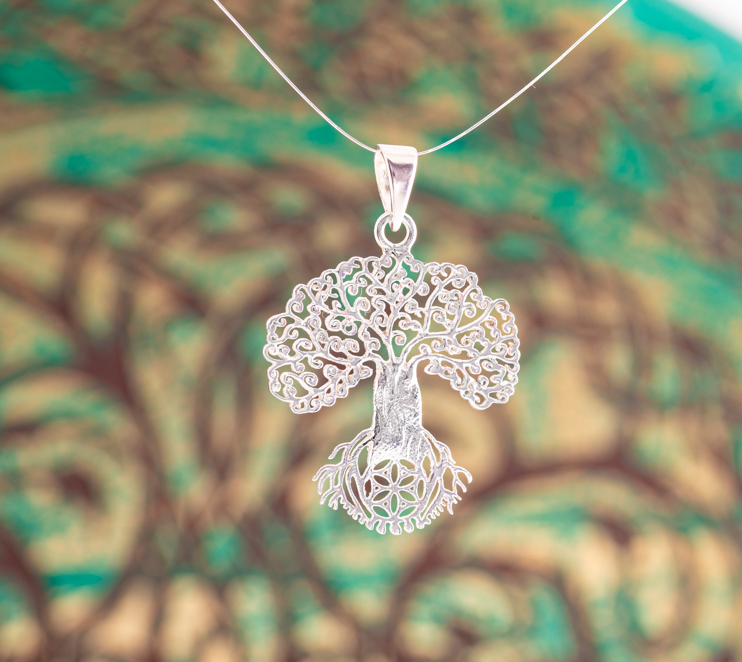 Feingliedriger Yggdrasil mit Saat des Lebens Symbol, aus 925er Silber