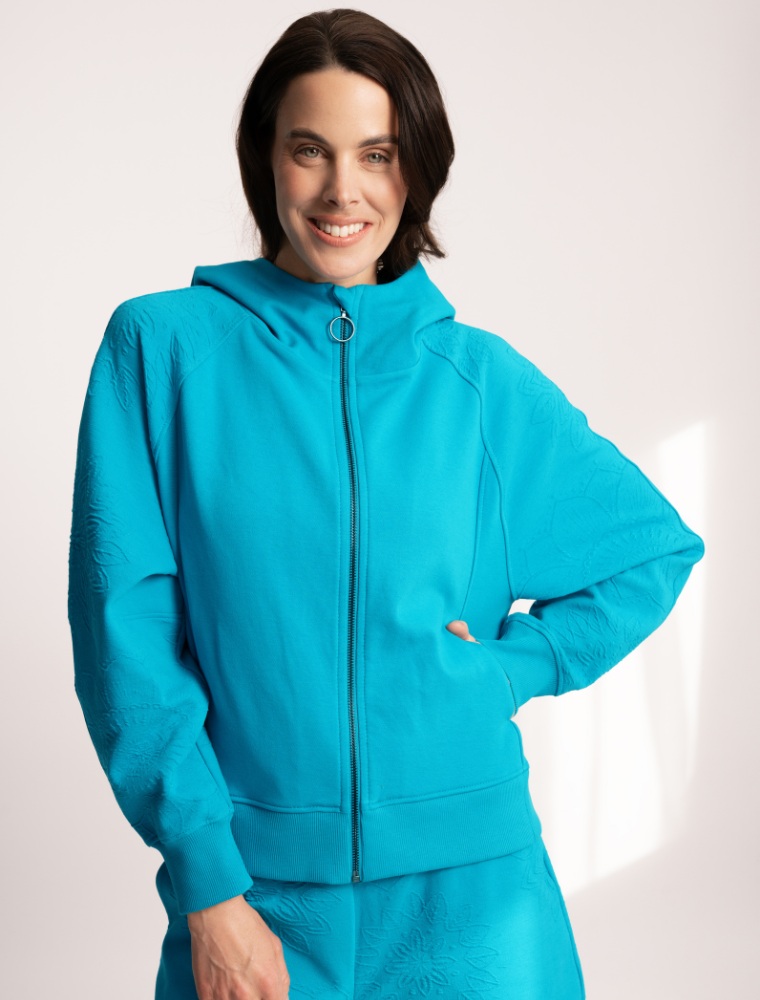 | Die Sweatjacke Gati Nava ist sportlich geschnitten und hat einen durchgehenden Reißverschluss sowie eine weich fallende Kapuze. Die Jacquard-Webung zeigt sich an den Ärmeln und an der Kapuze. Das eingewebte Muster bringt Struktur in den Stoff und gibt der Jacke eine lebendige Oberfläche. Die Raglan-Ärmel sorgen für mehr Bewegungsfreiheit und einen gleichmäßigen Sitz. Seitentaschen sind in die vorverlegte Seitennaht integriert und fügen sich unauffällig in das Design ein. Am Rücken ist das Bündchen etwas höher angesetzt – ein bewusst gesetztes Detail, das der Jacke eine moderne und sportliche Form gibt. Im Stoff ist mikrofeiner Turmalin verarbeitet, waschfest im Gewebe integriert. Turmalin wird traditionell mit Schutz und innerer Balance in Verbindung gebracht und ist als ruhiger Bestandteil Teil des Materials. |