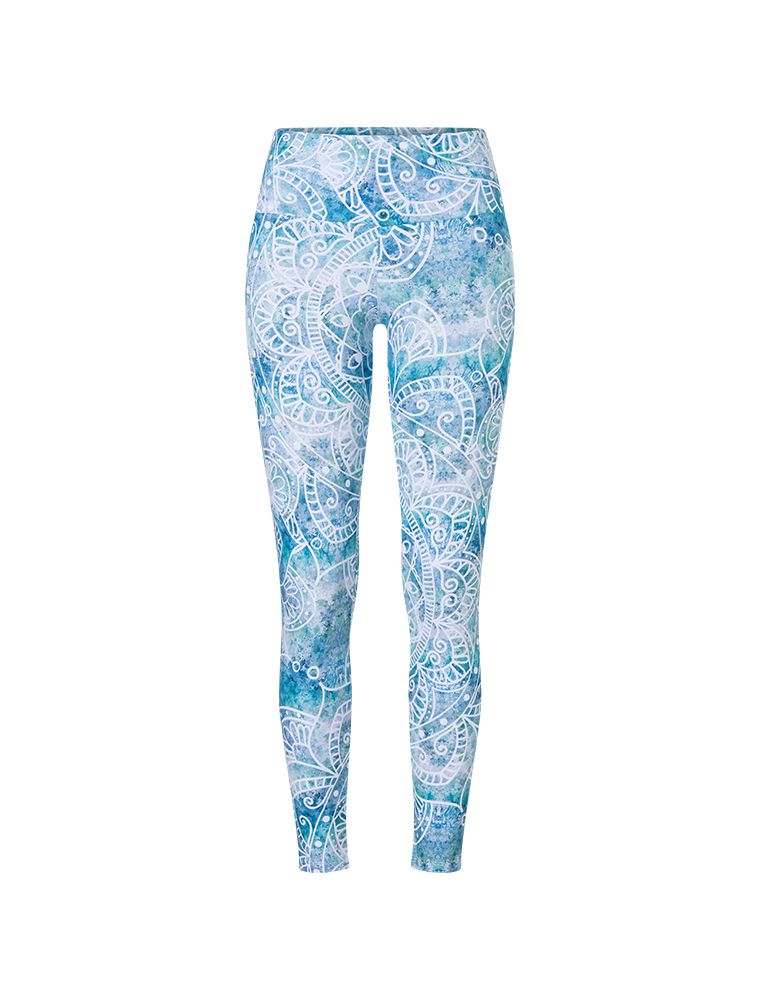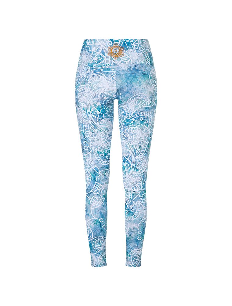 | Caru (चारु) bedeutet lieb oder schön – ein Name, der perfekt zu einer Leggings passt, die durch ihr Muster sofort ins Auge fällt und sich dabei angenehm weich anfühlt. Die Yoga Leggings Caru ist körpernah geschnitten, mit schmalem Bein und hohem Bund. Sie sitzt stabil und bequem, damit du dich frei bewegen kannst. Das Mandala-Muster ist als Alloverprint gestaltet und gibt der Leggings ihren besonderen Look: detailreich, fließend und ruhig. In der Farbe Eisblau wirkt das Design klar und leicht – frisch, feminin und wunderbar harmonisch. Hinten auf dem Bund ist ein Chakra-Symbol als Print platziert (Svadhisthana). Svadhisthana wird traditionell dem Bereich zwischen Becken und Bauchnabel zugeordnet – genau dort, wo der Bund sitzt. Als Zeichen steht es sinnbildlich für Lebensfluss und kreative Energie und passt damit zum Design und der Silhouette dieser Leggings. Gefertigt aus Bio-Baumwolle und GOTS-zertifiziert, steht Caru für ein hochwertiges Tragegefühl mit klaren Standards. Im Stoff ist außerdem Rosenquarz verarbeitet – traditionell verbunden mit Harmonie, Sanftheit und einem liebevollen Gefühl. |