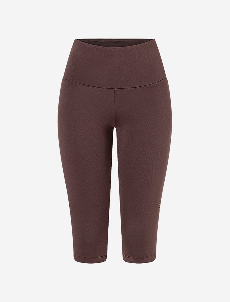 Material: 95% Baumwolle (kbA), 5% Elastan (Ökotex Standard 100), Capri-Länge mit schmalem Bein, hoher Bund mit angenehmem Halt, verdeckte Schlüsseltasche in der Seitennaht, Goldfoliendruck seitlich an beiden Beinen und hinten am Bund, mikrofeiner Turmalin im Stoff eingearbeitet, vegan & fair produziert von Spirit of Om