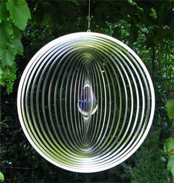 Edelstahlwirbel Kreis 45 cm mit Kugel D 7 cm blau