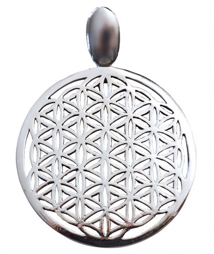 Anhänger Blume des Lebens, aus Messing versilbert, gross D 3,6 cm