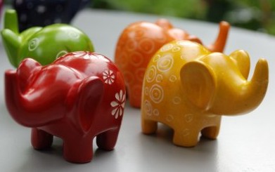 Elephant in verschiedenen Farben und Mustern, aus Speckstein
