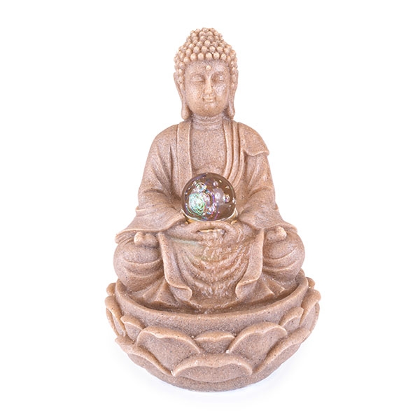 Brunnen Buddha mit drehender Kugel im Sandsteinlook