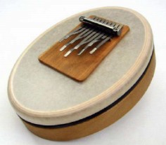 edle Kalimba mit 9 Metallzungen, auf Zellulosefell im ovalen Rahmen, a moll