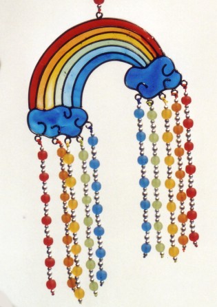 Regenbogen mit Wolken , Suncatcher mit 10 Perlenketten