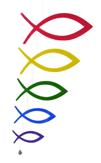 Mobile Ichthys, 5 Fische in regenbogenfarben