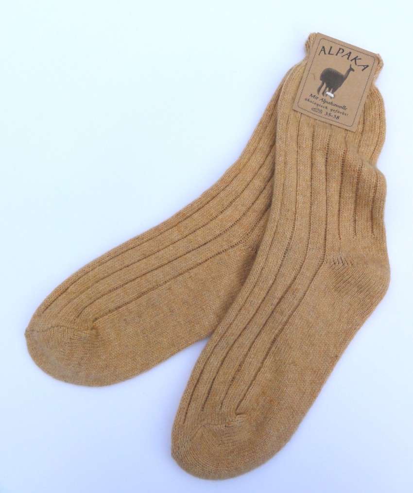 Paar Socken aus Alpaka-Flies mittel, in hellbraun, Grösse 39-42