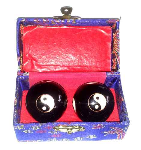 2 Qi Gong Kugeln Yin Yang schwarz D 35mm