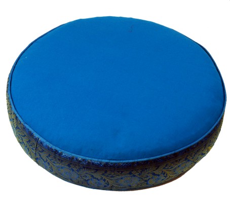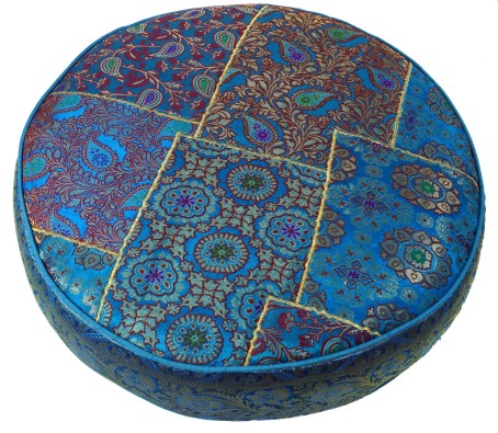 Patchwork Sitzkissen rund 40 cm, blau mit Blumenranken aus Brokatstoff
