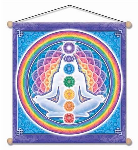 Wandbehang Lichtkörper Chakras Lotus im Regenbogenkreis, quadratisch