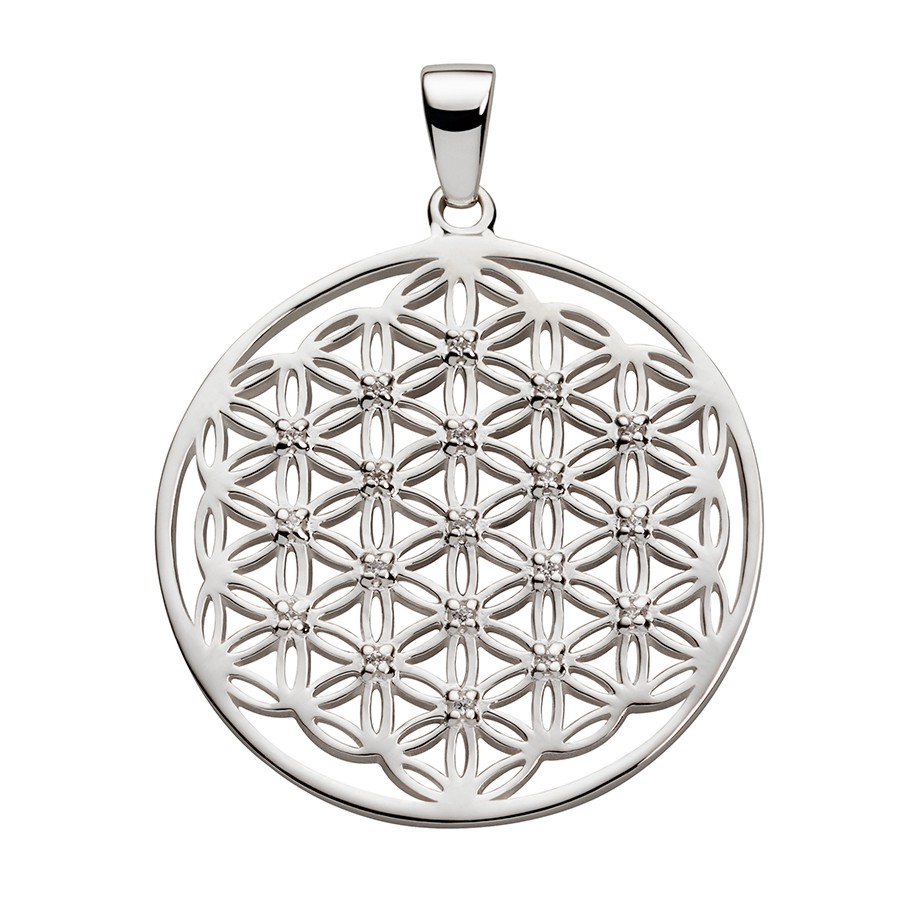 Anhänger Powerblume des Lebens mit 19 Zirkoniasteinen, aus 925er Silber, D 3,0 cm